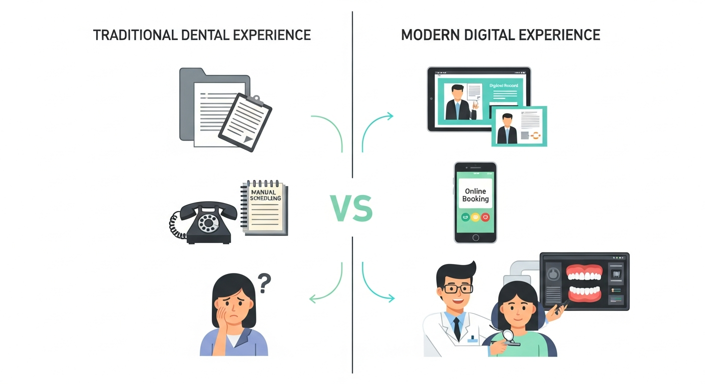 The paradigm shift in dental care: from an analog, inefficient process to a streamlined, patient-centric digital experience.