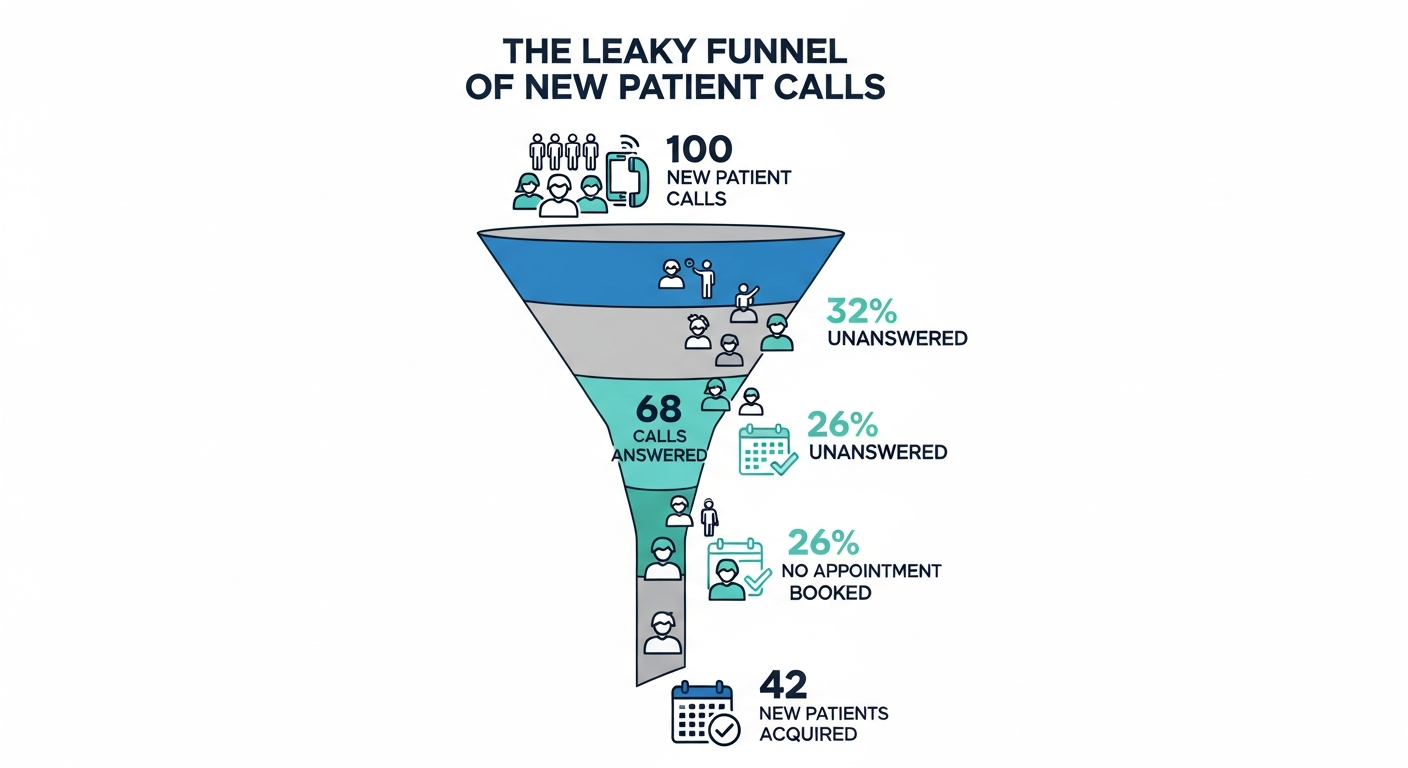 Disconnected phone systems create a 'leaky funnel' where potential new patients are lost at each step of the communication process.