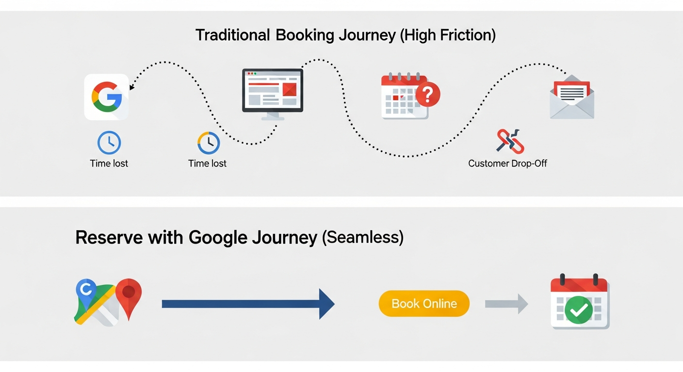 Reserve with Google transforms a complex, multi-step booking process into a seamless, two-click experience, capturing customer intent directly within Google.